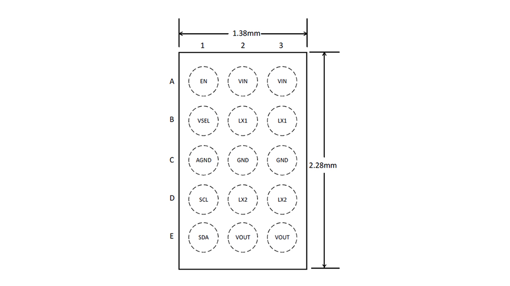 ? 1.38 mm × 2.28 mm、15引腳、小型WLCSP封裝