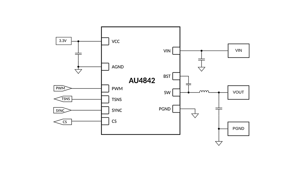 AU4842適用于需要高輕載效率的應(yīng)用。AU4842在輕載條件下可進入超低靜態(tài)電流狀態(tài)。