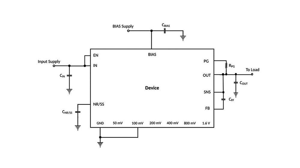 AU8015EA是一款低噪聲(4.3 μV RMS)、低壓降線性穩(wěn)壓器(LDO),能夠在壓降僅為200 mV的情況下提供4 A電流。該器件的輸出電壓可通過引腳配置在0.8 V至3.95 V,以及可使用外部分壓電阻在0.8 V至5.15 V范圍內(nèi)調(diào)節(jié)。